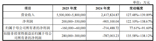 长鑫表示,2025年,随着公司产销规模的持续增长、产品结构的持续优化,以及2025年下半年以来DRAM产品价格的快速上涨,公司预计实现营业收入较上年同期大幅增加,净利润实现转正,归属于母公司所有者的净利润亏损金额较上年同比大幅收窄。