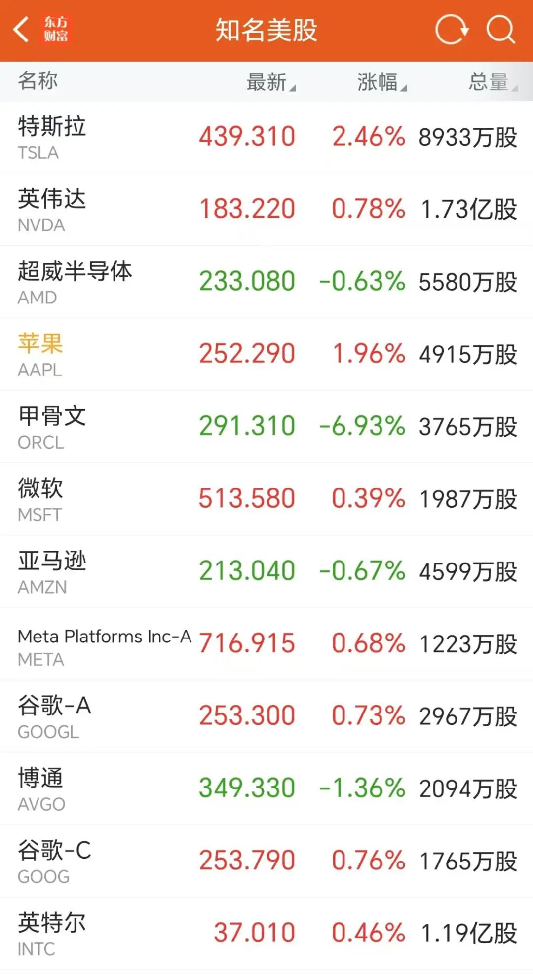 热门科技股涨跌不一,特斯拉涨超2%,苹果涨近2%,甲骨文跌近7%,超微电脑、ARM跌超3%,博通跌超1%,亚马逊跌近0.7%。