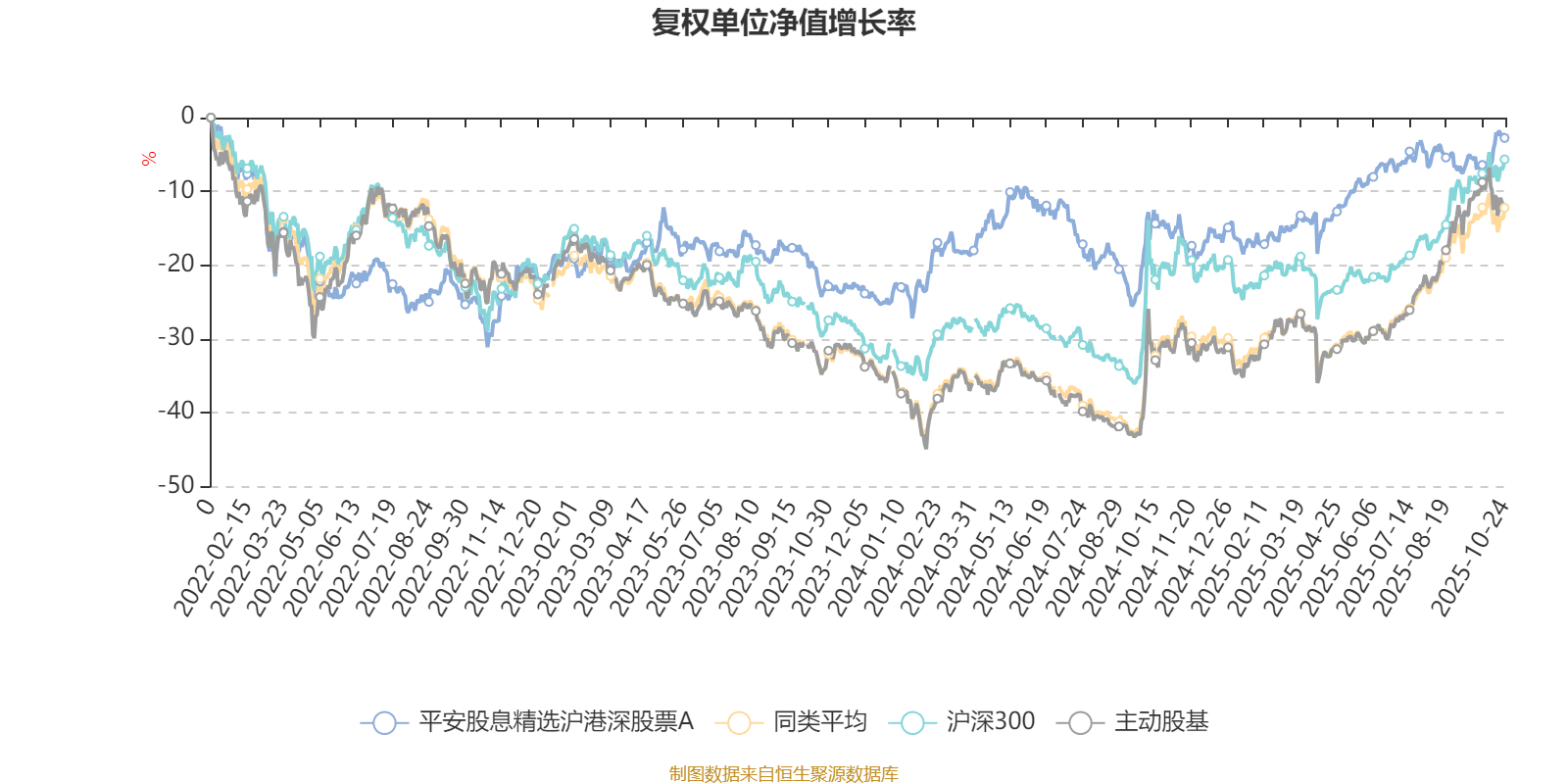 截至10月24日,平安股息精选沪港深股票A近三个月复权单位净值增长率为0.35%,位于同类可比基金111/121;近半年复权单位净值增长率为11.09%,位于同类可比基金99/121;近一年复权单位净值增长率为13.98%,位于同类可比基金89/115;近三年复权单位净值增长率为33.51%,位于同类可比基金24/85。